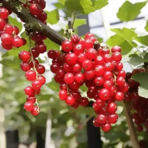Gyümölcs kinézete: bogyói középnagyok, fénylő piros színűek, hosszú – nagy fürtökben áll